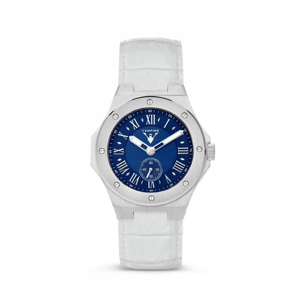 AZURE with a blue sunray dial and silver case takes on a refined look with a leather strap from the Infinite Collection. Crafted in 316L steel, sapphire glass, 5 ATM resistant.